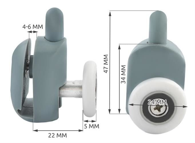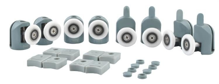 Viršutinių ir apatinių ritinėlių komplektas dušo kabinai su dangteliais ir buferiais. Viršutiniame volelyje yra reguliuojamas tvirtinimo elementas. Volai montuojami ant guolių, tinka 4-6 mm storio stiklui, dera į įvairaus tipo dušo kabinas.