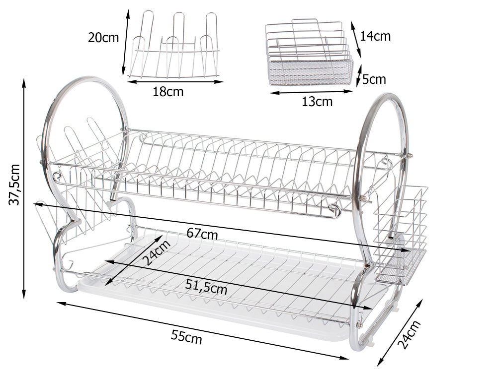 Šis Dvigubo denio nusausintojo stovo maišytuvas džiovintuvas su sidabrine apdaila puikiai atrodys bet kurioje virtuvėje, o jo kompaktiški matmenys (aukštis: 37,5 cm, plotis: 67 cm, gylis: 24 cm) užtikrins, kad jis puikiai tiks jūsų erdvėje.