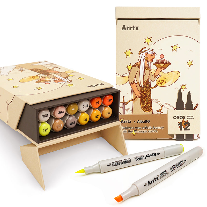 Profesionalūs meno žymekliai: Visuose Arrtx OROS serijos žymekliuose naudojami patvarūs pluošto antgaliai, labai pigmentuoti aukštos kokybės alkoholio pagrindu pagaminti rašalai. Siekiame pateikti kokybiškus žymeklius menininkams, dizaineriams, dailininkams, amatininkams, dailės studentams ir kt. Markeriai-flomasteriai ARRTX Oros, skirti piešimui, iliustravimui, eskizavimui, ryškinimui, atvaizdavimui. Šis markerių-flomasterių rinkinys pateikiamas su austu krepšiu, o markeriai-flomasteriai sudėti į pastikinį laikiklį. Laikiklis sukurtas taip, kad kiekvienas markeris-flomasteris turėtų atskirą skyrių.
