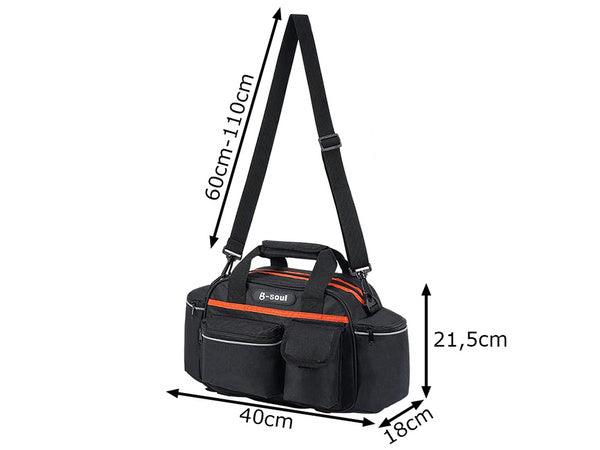 Šis krepšys pagamintas iš tvirtų medžiagų, atsparių atšiaurioms oro sąlygoms, todėl jį galite naudoti bet kurioje kelionėje. Su aukštos kokybės užtrauktuku ir šviesą atspindinčia juostele, jis ne tik praktiškas, bet ir saugus. Bendrieji matmenys - 40 cm x 21,5 cm x 18 cm, o talpa siekia apie 15 l, leidžia jums laikyti viską, ko reikia.