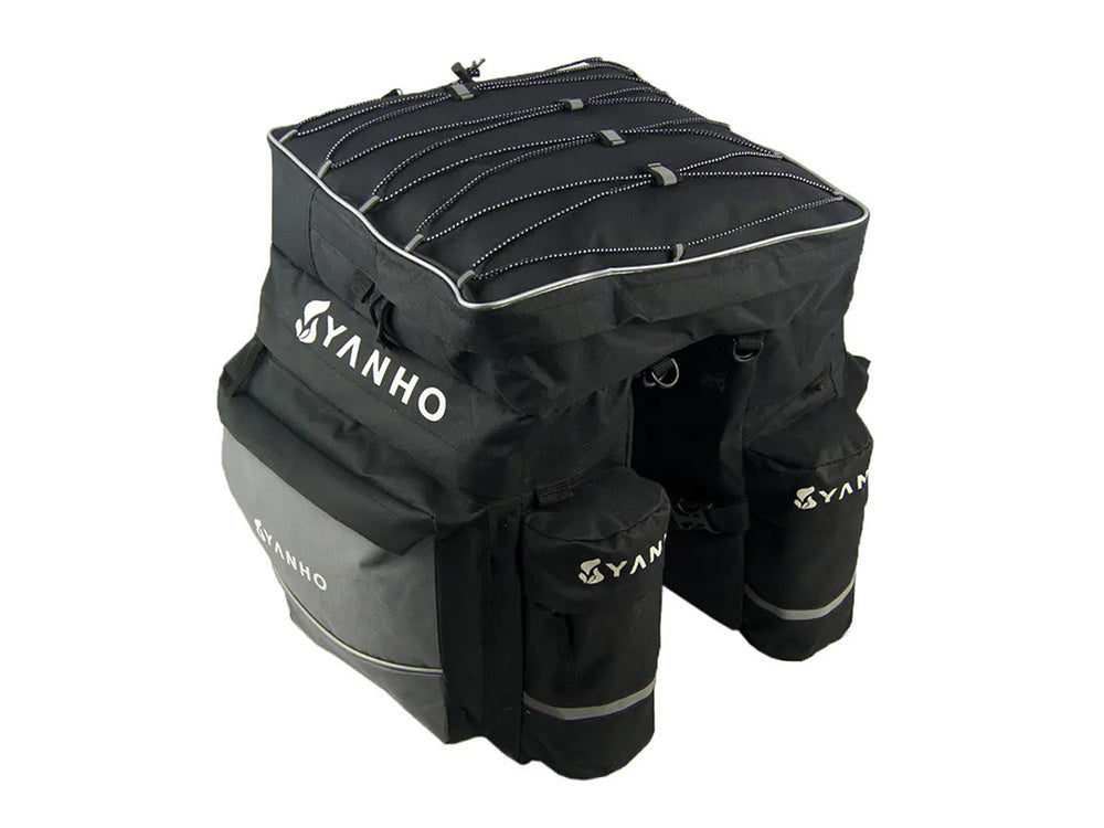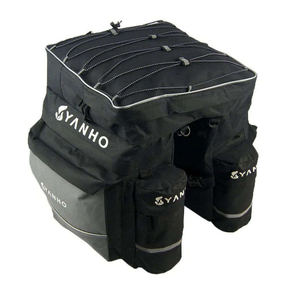 ☑️ Folijos pakuotėDVIRAČIO BAGAŽINĖS KREPŠYS DIDELIS GALINIS 3 SKYRIAI