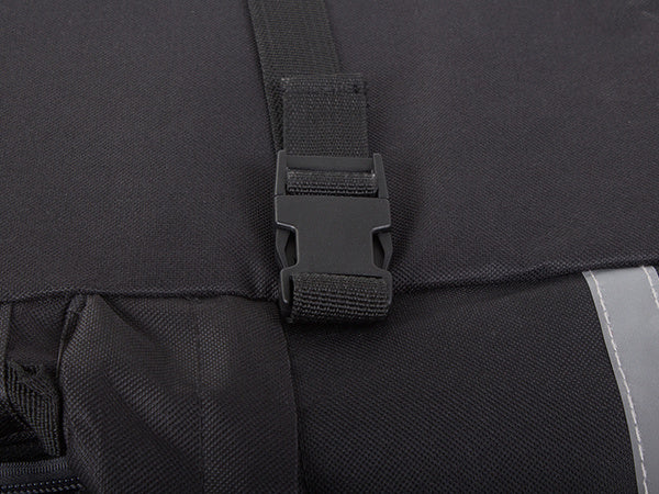 Daugiafunkcinis didelis dviračio krepšys, tvirtinamas prie bagažinės. Itin naudingas ilgesnėms kelionėms dviračiu, į jį galima susidėti drabužius, smulkius daiktus, maistą. Labai talpus, papildomai įrengta apsauga nuo lietaus. Krepšys turi 1 skyrių viršuje ir 2 didelius šonuose. Visi užsegami užtrauktuku. Kiekvienoje pusėje papildomai yra po dvi mažesnes kišenes. Viršutiniame skyriuje, kitoje nedidelėje kišenėje paslėptas lietpaltis. Krepšys apsiūtas šviesą atspindinčia juostele , kad keliaujant būtų užtikrintas didesnis saugumas. Universalus krepšys tinka daugumai bagažo laikiklių tipų, tvirtinamas reguliuojamomis sagtimis. Krepšio viršuje taip pat galime paslėpti kai kuriuos daiktus, yra elastinė juosta, kad bagažas būtų gerai pritvirtintas. ✅ Produkto kodas: 14325 ✅ Pagaminta iš aukštos kokybės medžiagų ✅ Reguliuojami kabliukai ✅ 3x dideli skyriai ✅ 4x mažesnės kišenės ✅ S ustiprinta konstrukcija ✅ Apsauga nuo lietaus ✅ Lengvas krepšio surinkimas ir išardymas ✅ Elastinė juosta viršuje ✅ Atspindinti juostelė ✅ Spalva: juoda