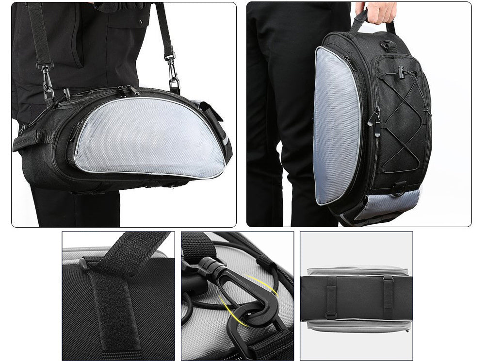 Šis dviratininko krepšys yra ne tik praktiškas, bet ir elegantiškas, su juodu ir pilku dizainu, kuris puikiai derinsis su jūsų dviračiu. Pasinaudokite galimybe ir įsigykite savo dviračių krepšį dabar!