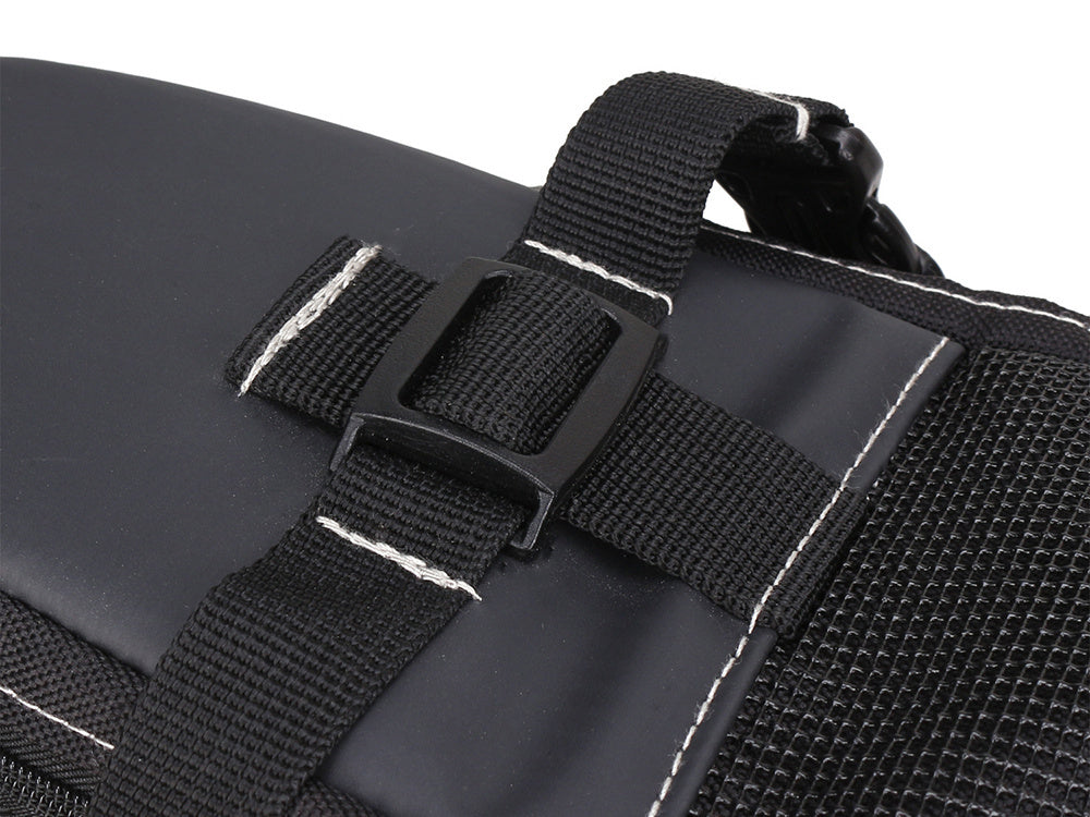 Su šiuo krepšiu, galite mėgautis kelionėmis bet kokiu oru, nes jis patikimai saugo jūsų daiktus. Montavimas po balneliu yra paprastas, o reguliuojami dirželiai užtikrina, kad viskas būtų tvirtai pritvirtinta.