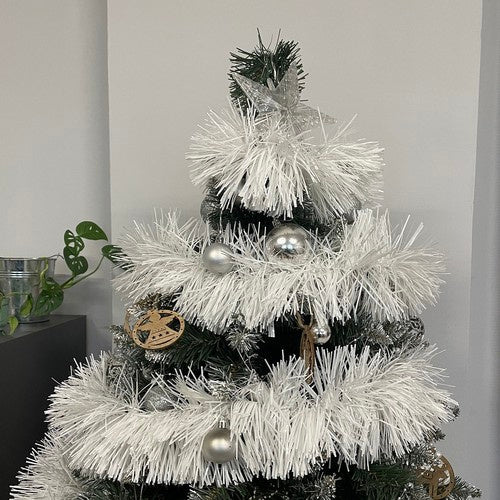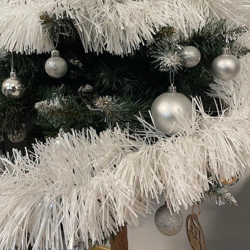 - ĮSPŪDINGAS GRANDINĖS ILGIS - balta, blizganti grandinėlė buvo sukurta siekiant pabrėžti dekoracijų ir Kalėdų eglutės grožį šventiniu laikotarpiu. 6M gražios, tankios grandinės suteiks medžiui spalvos, tekstūros ir vizualinio patrauklumo, kad jis taptų vertinga jūsų kalėdinių papuošalų dalimi.