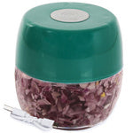 Atraskite elektrinį daržovių smulkintuvą svogūnams, česnakams ir žolelėms - nepakeičiamą pagalbininką jūsų virtuvėje! Šis belaidis prietaisas puikiai tinka greitam ir efektyviam ingredientų smulkinimui, nesvarbu, ar esate namuose, ar stovyklaujate.
