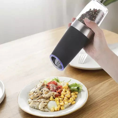 - GREITAS ŠLIVIMAS VIENA RANKA – elektrinis gravitacinis malūnėlis leidžia greičiausiai sumalti pipirų žirnelius ir kitus prieskonius. Tiesiog pakreipkite malūnėlį, kad suaktyvintumėte šlifavimo mechanizmą, kaip ir virtuvės kovos įkarštyje leis pagardinti patiekalą nenaudojant abiejų rankų.