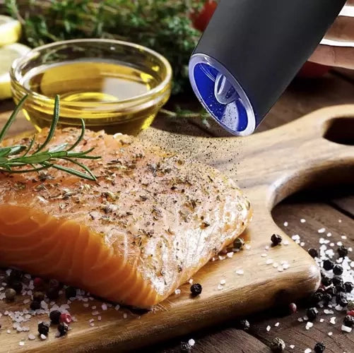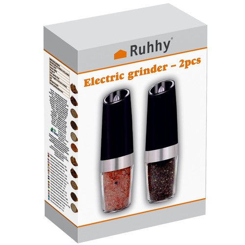 Iš prieskonių gaukite geriausią skonį ir aromatą. Virtuvėje naudokite elektrinį „Ruhhy“ gravitacinį šlifuoklį. Lengva naudoti, praktiška ir šiuolaikiška. Puikiai tinka malti druską, pipirus ir kitus prieskonius. Juodoji malūnėlis įsijungia jį pasukus 180 laipsnių kampu.