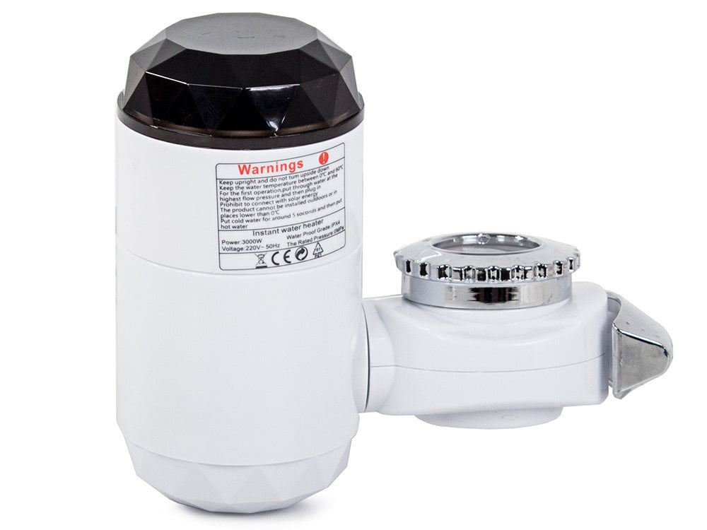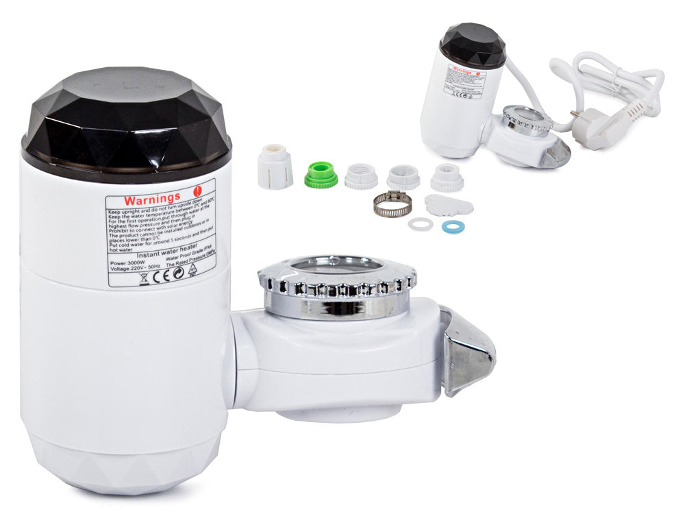 Momentinis elektrinis vandens šildytuvas - tai prietaisas, kuris nuolat kelia vandens temperatūrą. Didelė prietaiso galia leidžia nuolat tiekti karštą vandenį. Vandens srauto reguliavimas nustatomas viena rankenėle, o LCD ekranas informuoja apie vandens temperatūrą. Prietaisas yra estetiško dizaino, o balta spalva ir chromuoti priedai puikiai dera prie virtuvės interjero. Vandensšildytuvo čiaupą lengva sumontuoti. Į komplektą įeina penki adapteriai, kurių dydį galima pritaikyti prie čiaupo. Prietaisas labai greitai šildo vandenį. Per kelias sekundes vanduo pašildomas iki 30-60 laipsnių temperatūros. ✅ Produkto kodas: 15731 ✅ Galingumas: 3000 W ✅ Maitinimo šaltinis: 220V ✅ Temperatūros diapazonas kaitinant: 30~60 laipsnių Celsijaus temperatūra ✅ Vandens slėgis: 0,04-0,5 MPa ✅ Apsaugos laipsnis: IPX4 (apsauga nuo padidinto slėgio vandens purslų) ✅ Kabelio ilgis: 95 cm ✅ 5 adapteriai ✅ 2 tarpikliai ✅ Metalinis spaustukas ✅ Maitinimo indikatoriaus lemputė ✅ LCD temperatūros rodmuo ✅ Raktas adapteriui atsukti ✅ Šildymo galvutės matmenys: 12 cm x 6 cm ✅ Prijungimo galvutės matmenys: 8 cm 6 cm 4,5 cm ✅ Bendrieji šildytuvo matmenys: 12,5 cm x 14 cm x 6,5 cm ✅ Spalva: balta ✅ Gaminys turi CE sertifikatą ☑️ Gamyklinis naujas momentinis vandens šildytuvas ☑️ Adapteriai: 5 vnt. ☑️ Tarpikliai: 2 vnt. ☑️ Metalinis spaustukas: 1 vnt. ☑️ Raktas adapteriui atsukti ☑️ Originali pakuotėMOMENTINIO ELEKTRINIO VANDENS ŠILDYTUVO GALIA: 3000 W