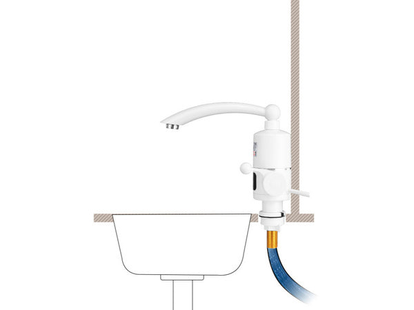 - Sumontuokite maišytuvą virš kriauklės arba praustuvo.