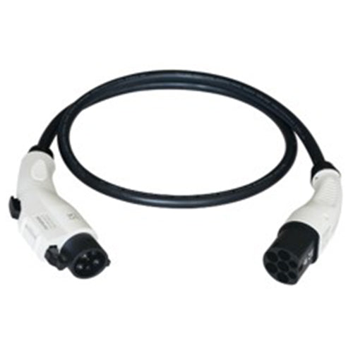 Įkrovimo kabelis elektromobiliams, Type 1 (Female) - Type 2 (Male), 32A, 7.2kW, 1-fazė, 5m. Pagamintas iš patikimų medžiagų, atsparių slėgiui, dilimui, nestipriems smūgiams, su IP44 apsaugos klase.
