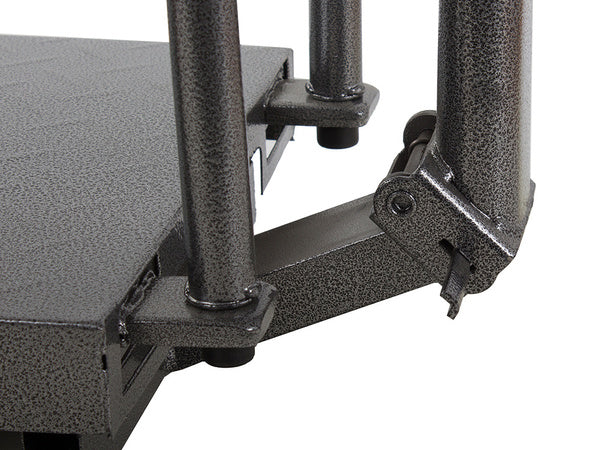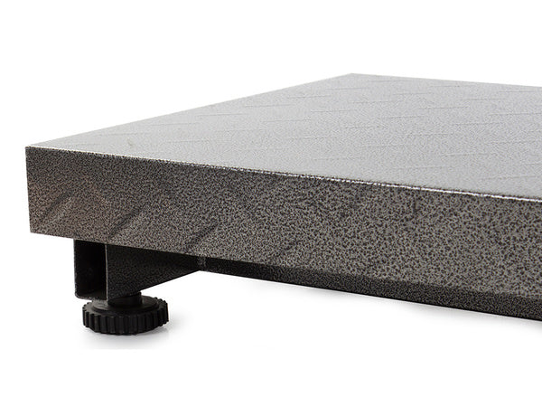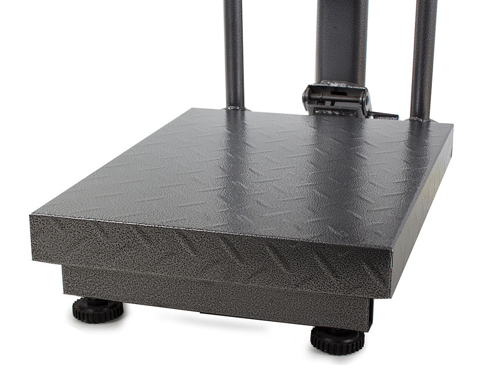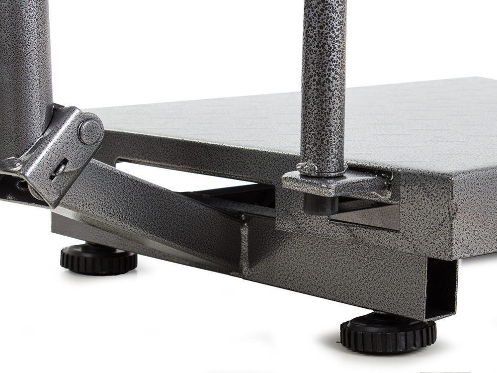 - Reguliuojamomis kojelėmis ir neslystančiu paviršiumi, užtikrinančiu, kad svoris bus tiksliai išmatuotas.