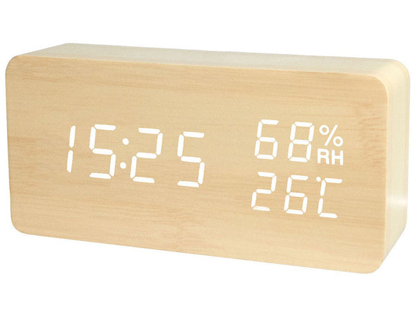 Pristatome Elektroninį žadintuvą termometrą higrometrą USB, modernų ir stilingą laikrodį, kuris ne tik puikiai atrodo, bet ir yra itin funkcionalus. Su medžio imitacijos apdaila, šis laikrodis taps puikiu akcentu bet kuriame interjere - miegamajame, svetainėje ar biure.