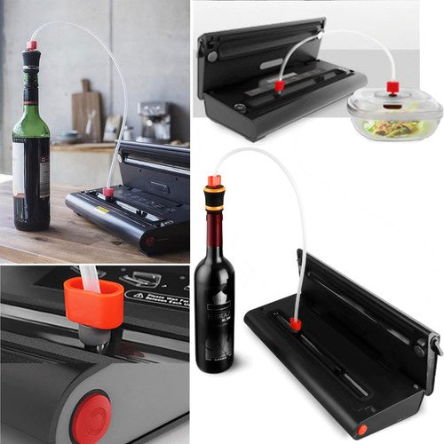 - DAUGIFUNKCINIS - Sandariklis turi daug įdomių funkcijų, kurios palengvins naudojimą ir gerokai palengvins maisto pakavimą. įskaitant: sveriant su taravimas, sauso ir šlapio maisto pakavimo mygtukas, sandarinimas, greičio nustatymai, marinavimo režimas ir butelių sandarinimas . Prietaisas taip pat turi vakuuminis antgalis, kuris pašalina orą iš maišelių . Jis tinka suvirinti folijos pakuotes, tokias kaip paketėliai, ritininės folijos, maišeliai ir net dokumentų rankovės.