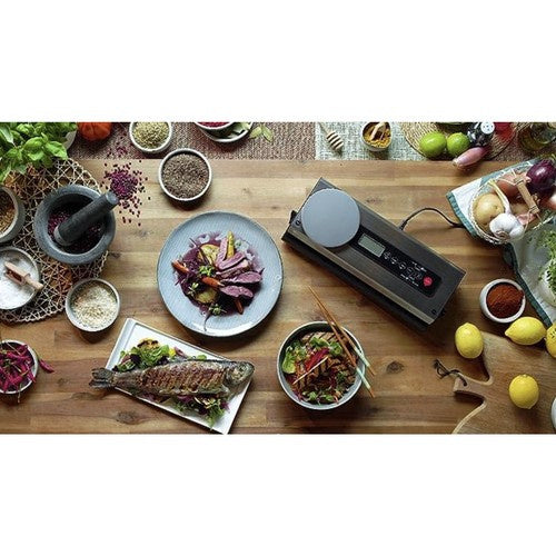 - SPECIFIKACIJOS - medžiaga ABS, kiti: nerūdijantis plienas su svarstyklėmis (nerūdijantis plienas) + ritinėlių rinkinys + maišelių komplektas (PA+PE) + kamštiena/butelio kamštis (ABS + silikonas) + peilis (dominuojanti medžiaga: ABS, kiti: plienas); darbinė temperatūra: 0-40 laipsnių; įtampa: 100-120 / 220-240V; galia: 120W; vakuumo lygis: -80kPa; svorio riba: 2 kg; žingsniais: 1g; vienetai: g/kg/oz/lb; matmenys (plotis/ilgis/aukštis): 36,5/15/7,5cm; svoris: 1,6 kg; svoris pakuotėje: 3,4 kg.