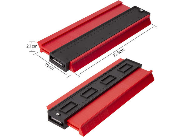 Su šiuo šablonu galima greitai ir lengvai nubraižyti figūras ir perkelti jas ant medžiagos. Galite lengvai išpjauti pusapskritimius vamzdžiui arba nubrėžti durų rėmo formą. Šablonas yra iki 275 mm pločio, todėl jį galite naudoti vietose, kur yra kelios dalys, ir visas jas apvesti vienu ypu. Įrankis puikiai tinka ne tik įprastiems namų remontams, bet ir profesionaliems darbams. Sudėtingų didelių elementų formą lengvai perkelsite į pasirinktą medžiagą. ✅ Produkto kodas: 11289 ✅ Aukštos kokybės apdirbimas ✅ Lengva naudoti ✅ Skaitymo gylis: 42 mm ✅ Skaitymo plotis: 260 mm ✅ Matmenys: 27,5 cm x 10 cm x 2,1 cm ✅ Spalva: raudona ☑️ Naujas gamyklinis trafaretas ☑️ Originali pakuotėFORMOS PERKĖLIMO ŠABLONAS DIDELIS XL