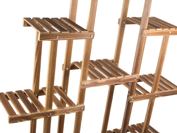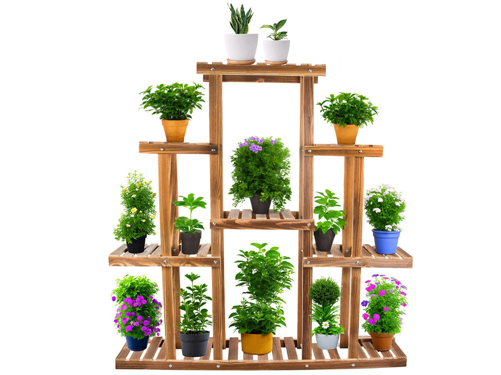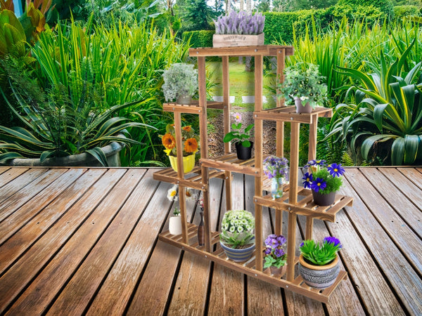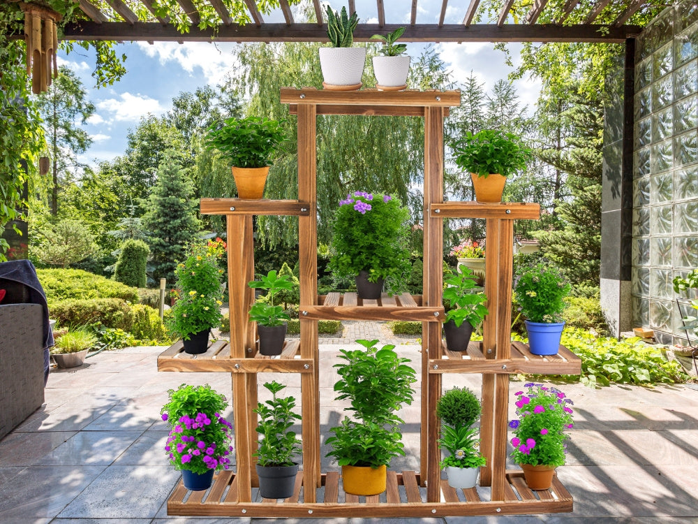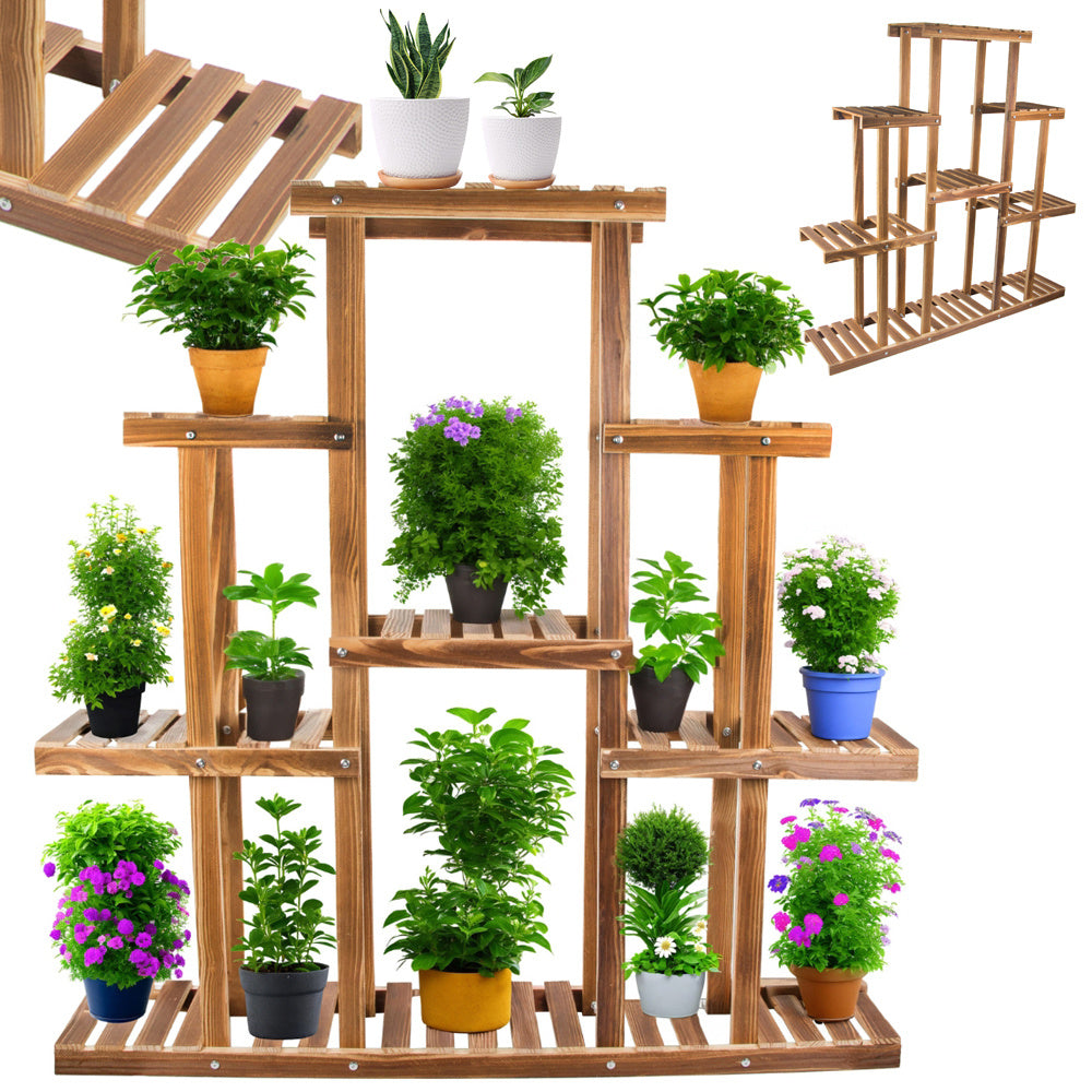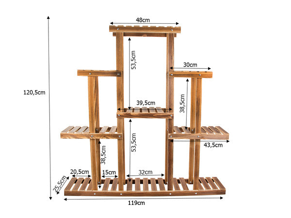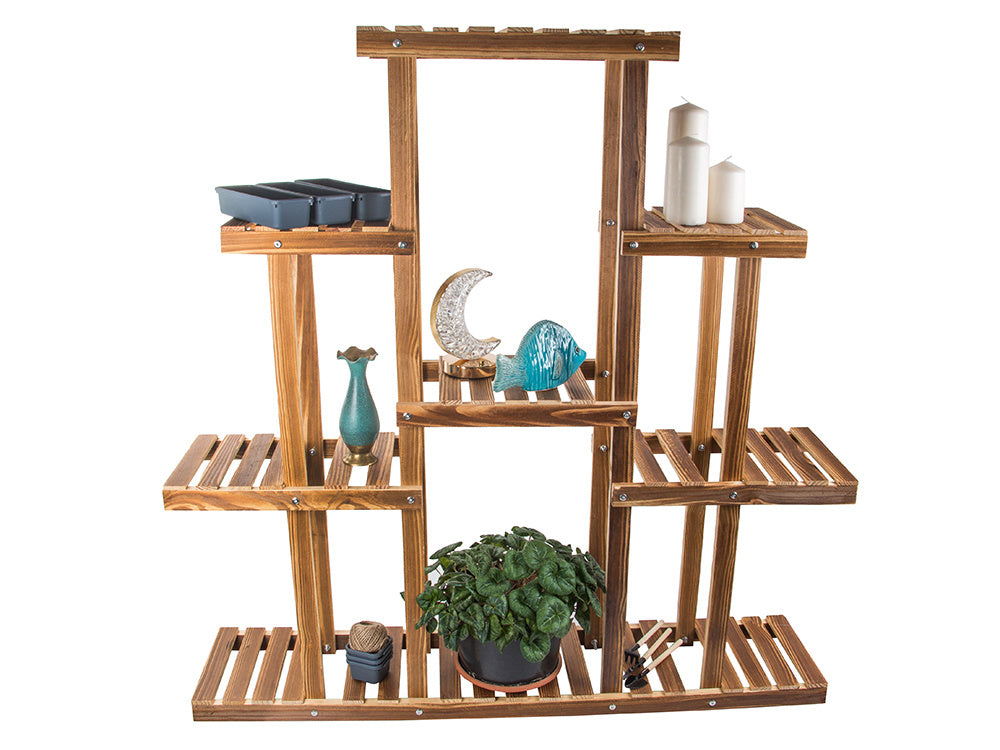 Įneškite natūralaus žavesio į savo namus su aukštu mediniu gėlių loveliu, kuris puikiai tinka tiek interjerui, tiek eksterjerui. Šis stilingas ir funkcionalus 3 pakopų gėlių vazonas ne tik eksponuoja augalus, bet ir tarnauja kaip praktiška knygų lentyna.