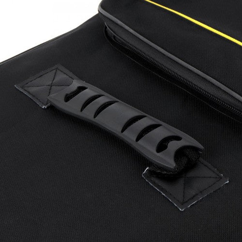 - SPECIFIKACIJOS - spalva: juoda; medžiaga: išorinis dangtelis: oksfordo audinys + PU, vidinis dangtis: poliesteris, užpildas: putplastis EPE, kiti: PP + guma + poliesteris + nailonas + cinko lydinys ; vidiniai matmenys (ilgis/plotis/gylis): 103/41/11 cm; išoriniai matmenys (ilgis/plotis/gylis): 107/44/12cm; svoris: 500g; svoris pakuotėje: 530 g