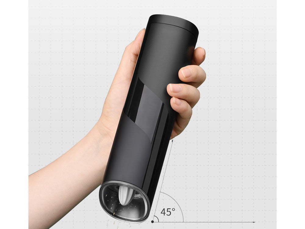 Patirkite kulinarinių akimirkų tobulumą su mūsų gravitaciniu elektriniu pipirų malūnėliu druskai. Šis elegantiškas ir modernus prietaisas, pagamintas iš aukštos kokybės medžiagų, puikiai tinka kiekvienam virtuvės mylėtojui. Tiesiog pakreipkite malūnėlį 45 laipsnių kampu ir jis automatiškai pradės malti jūsų mėgstamus prieskonius.