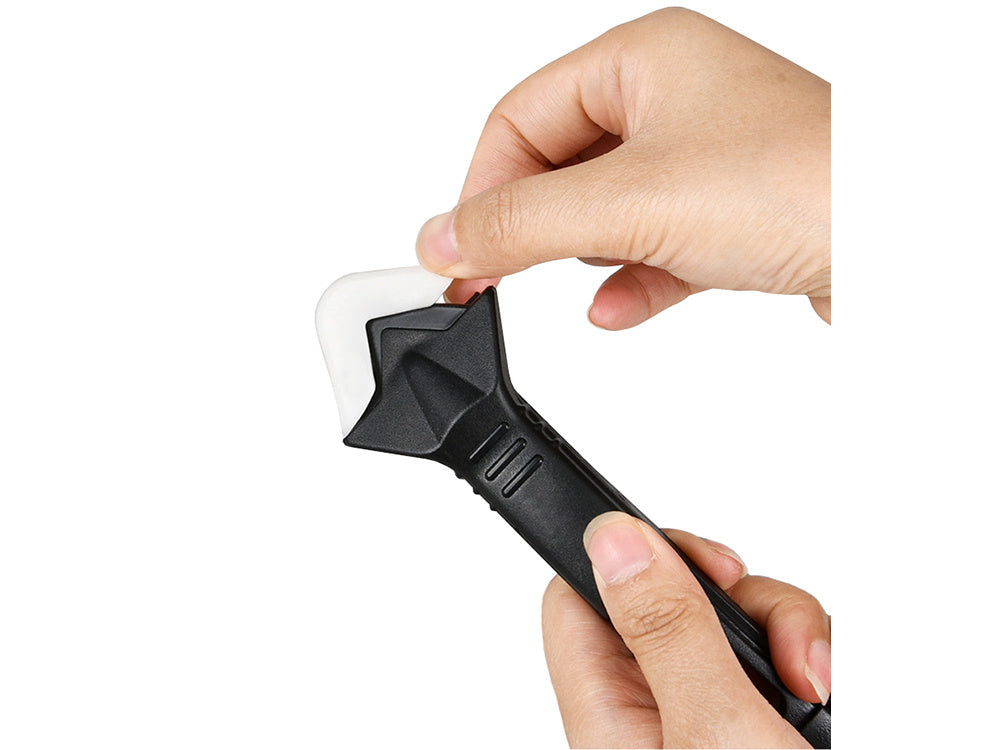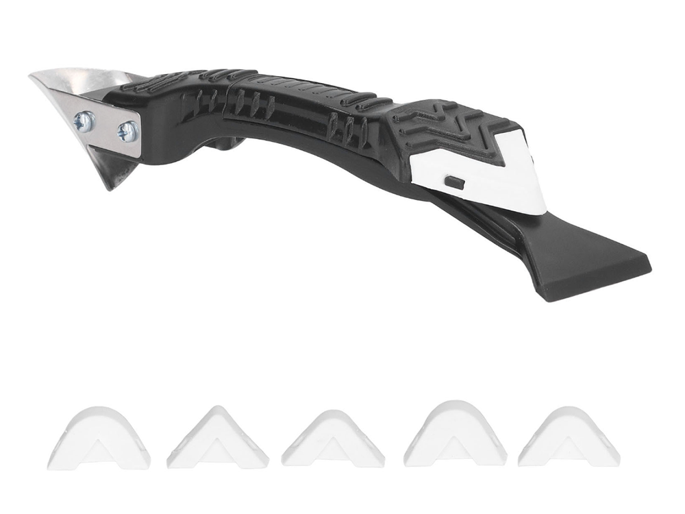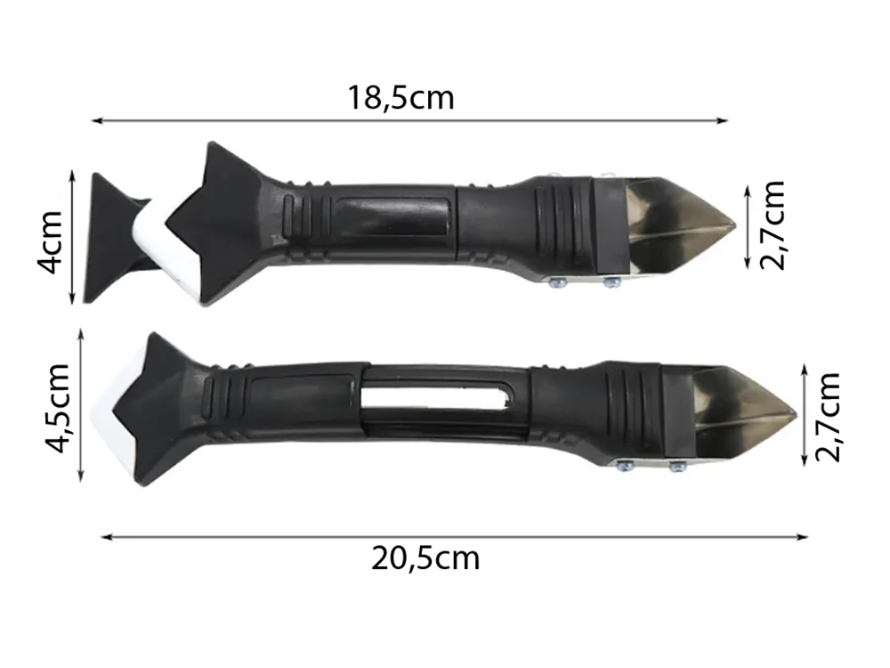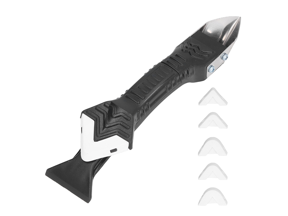 - Specialus užaštrintas plastikinis antgalis: Idealus silikono likučių pašalinimui nuo plytelių ir kitų plokščių paviršių.