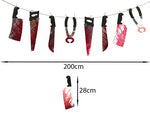 Pasiruoškite Helovino šventei su mūsų 2 m ilgio girlianda, puošta krauju suteptais įrankiais. Tai unikalus ir intriguojantis dekoracijos elementas, kuris suteiks siaubo ir paslaptingumo bet kokiam teminiam vakarėliui.