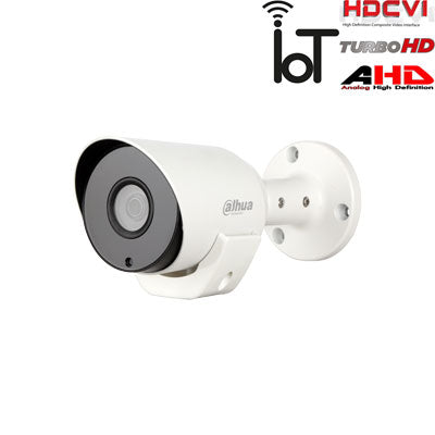 HD-CVI, TVI, AHD, CVBS FULL HD kamera cilindrinė, IR pašvietimas iki 30m. (Smart IR) Diena/Naktis, 1/2.9" 2.0 Megapixel CMOS sensorius 1080P 1920×1080 25kps, 2.8mm fiksuotas objektyvas (objektyvo apžvalgos kampas 104°), DWDR, daiktų internetas (angl. Internet of Things – IoT), HD-CVI technologija leidžia FULL HD vaizdą perduoti per koaksialinį kabelį neprarandant kokybės - maks. atstumas iki 800m., modelis: DH-HAC-LC1220TP-TH 2.8