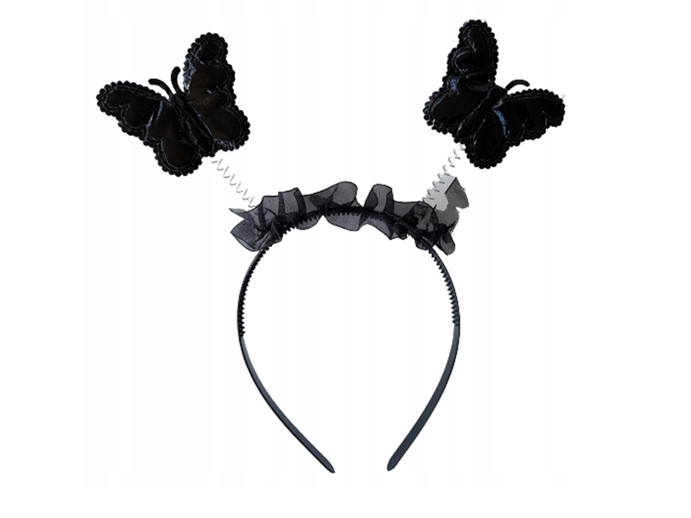 - Galvos juostą su juodais drugeliais ant spyruoklių, suteikiančią unikalumo ir magijos.