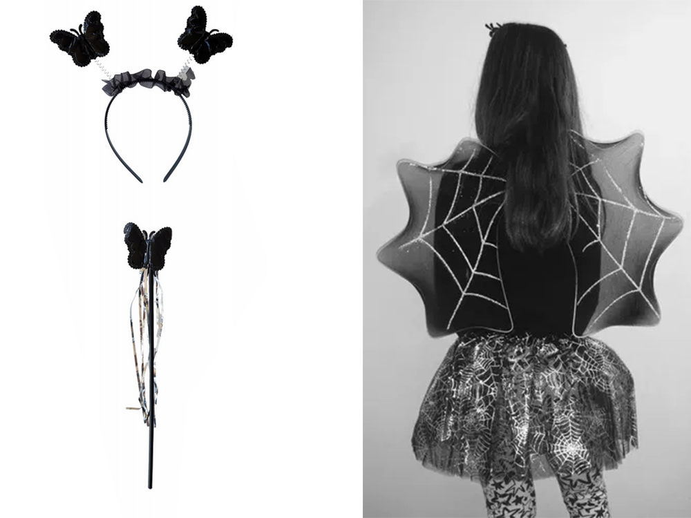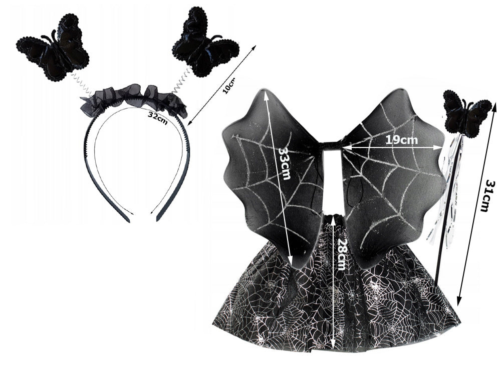 Pasiruoškite stulbinančiam Helovino vakarui su Helovino kostiumu suknelė sijonas voras galvos apdangalas drugelio sparnai lazdelė! Šis nuostabus kostiumų rinkinys pavers jūsų mergaitę stebuklinga burtininke, pasiruošusia bet kokiems Helovino nuotykiams.