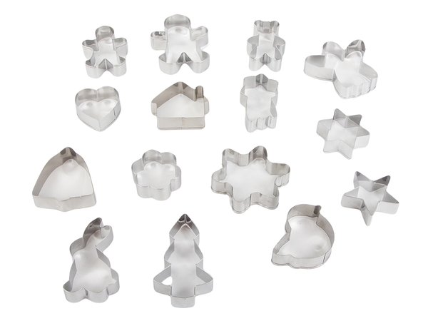 Pasinerkite į šventinį kepimo džiaugsmą su Imbierinių sausainių pjaustytuvais kalėdiniai sausainiai 15 vnt. Kepti. Šis unikalus rinkinys, sudarytas iš 15 įvairių formų, puikiai tinka kalėdiniams meduoliams ir kitiems skanėstams gaminti.