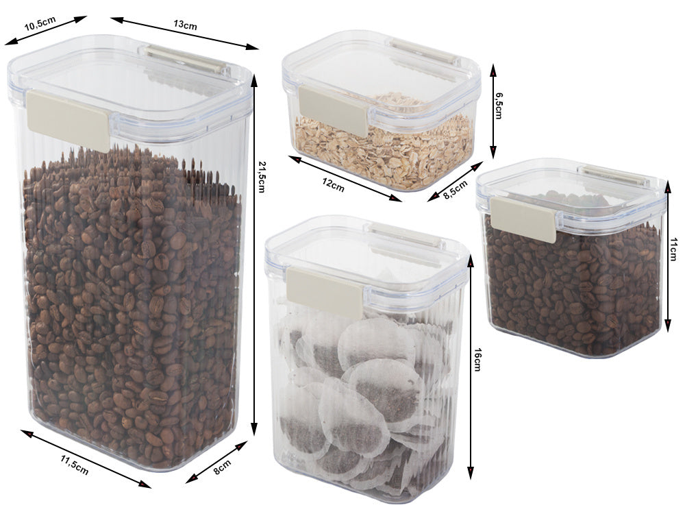 Užtikrinkite savo maisto produktų šviežumą ir patogumą virtuvėje su mūsų indeliais makaronams maisto indelis su sandarikliu 5 vnt. Rinkinys yra puikus sprendimas, skirtas laikyti įvairius maisto produktus, tokius kaip kava, arbata, grūdai, prieskoniai, makaronai ir cukrus.