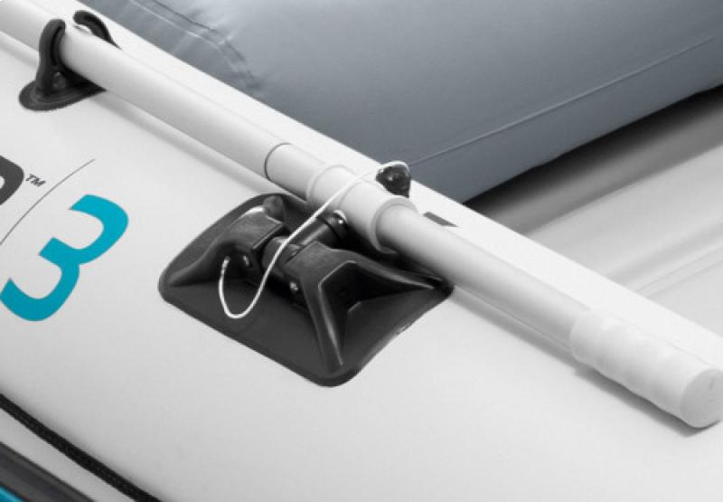 Two Boston valves on main hull chambers make inflating and deflating the boat fast