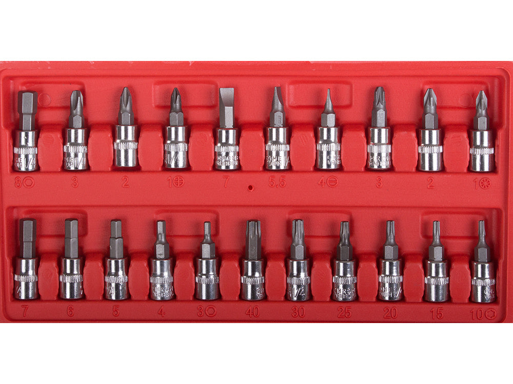 Pagamintas iš aukštos kokybės chromvanadžio plieno, šis rinkinys pasižymi dideliu atsparumu lūžiams ir deformacijoms. Visi įrankiai yra aiškiai pažymėti, o patogus plastikinis dėklas užtikrina, kad kiekvienas įrankis turės savo vietą.