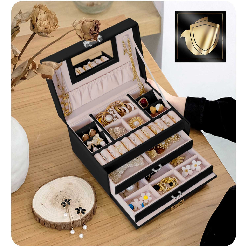 Statistikos duomenimis, 90% moterų teigia, kad joms svarbu turėti tinkamai organizuotus papuošalus, o 75% jų yra patenkintos savo juvelyrinių dirbinių saugojimo sprendimais. Juvelyrinė dėžutė MS-700 Massido - juoda buvo sukurta atsižvelgiant į šiuos poreikius, užtikrinant, kad jūsų brangakmeniai būtų ne tik saugūs, bet ir lengvai randami.