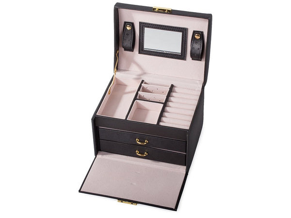 - Užrakinamas: Dėklas gali būti užrakintas raktu, todėl jūsų papuošalai bus saugūs.