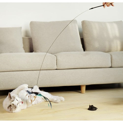 - LINKSMUMAS DVIEM - Jei norite, kad jūsų augintinis žaistų savarankiškai, galite pritvirtinti žaislą prie paviršiaus naudodami stiprus siurbtukas . Taip pat galite nuimti meškerę nuo pagrindo ir žaisti su savo katinu.