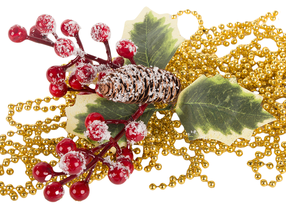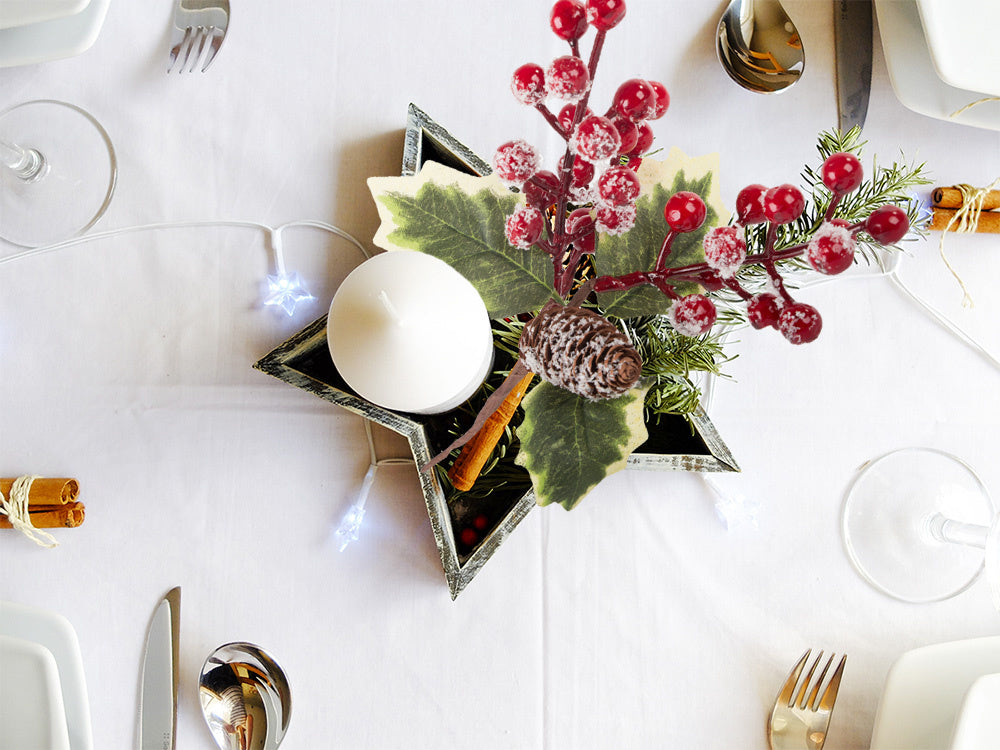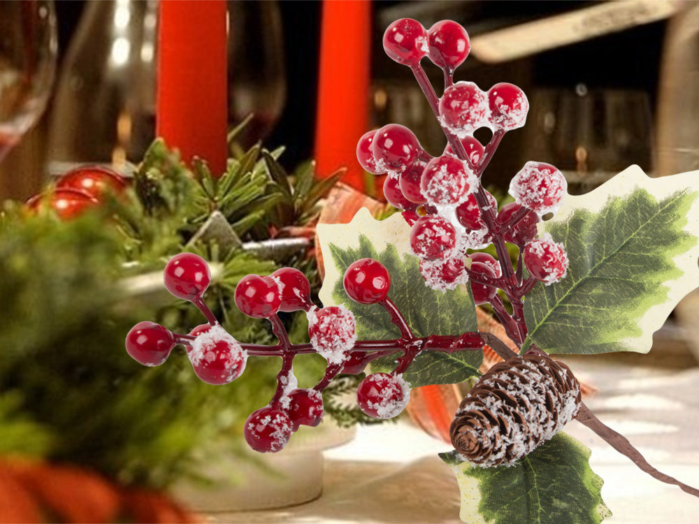 - Natūralus, miško akcentas su mahonijos šakomis, pušies kankorėžiais ir raudonomis uogomis.