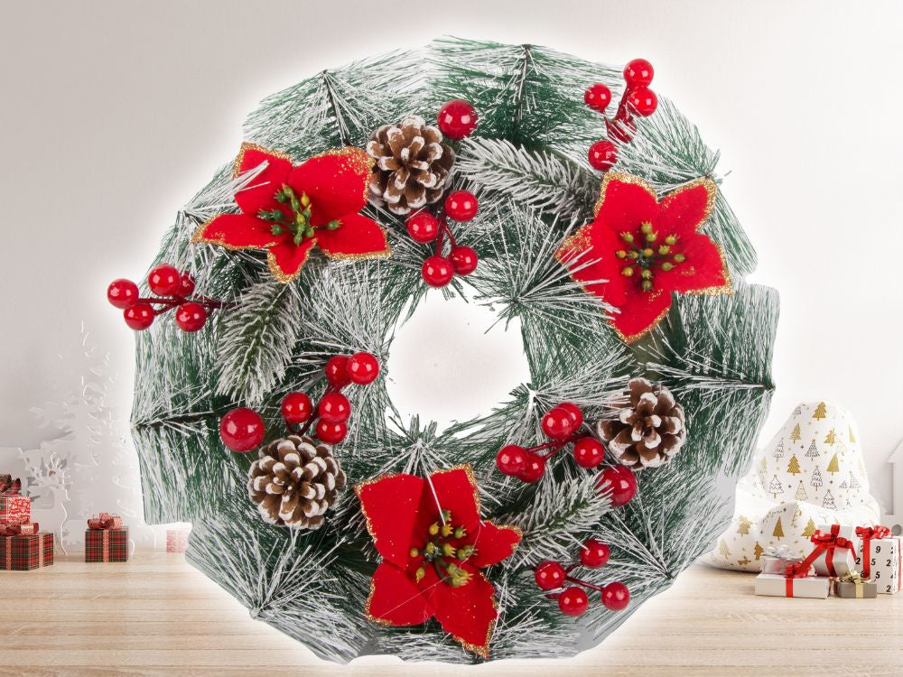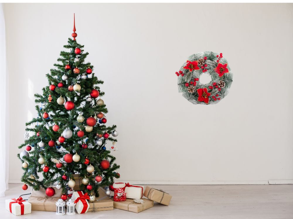 - Įėjimo durys: Kalėdinė girlianda yra klasikinė dekoracija, kuri puikiai tinka įėjimo durims. Pasikabink ją ant raudono, auksinio ar sidabrinio kaspino.