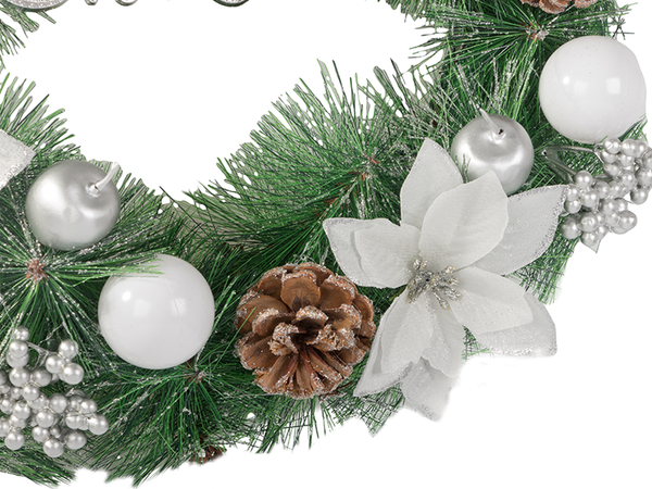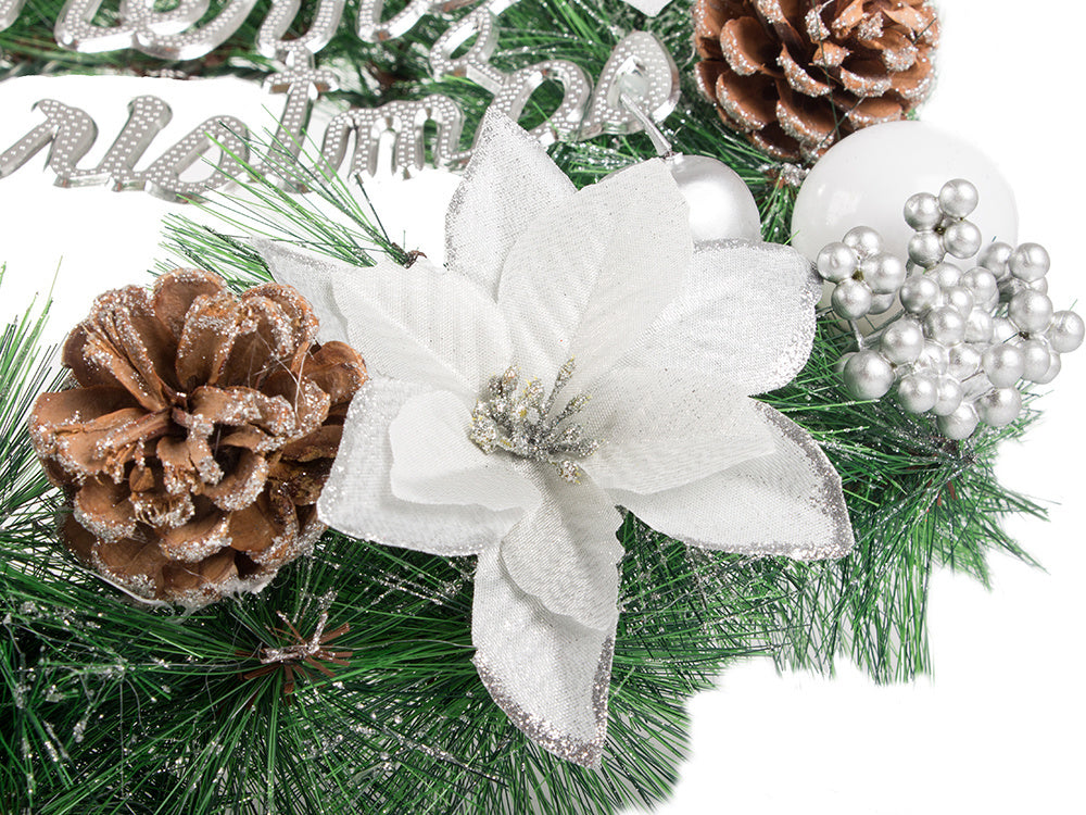 Ieškote puikios dekoracijos, kuri suteiktų jūsų namams šventinį stilių? Mūsų kalėdinės dekoratyvinės girliandos su ornamentais yra unikalus aksesuaras, kuris įneš Kalėdų magijos į bet kurį interjerą. Ši girlianda puikiai tinka tiek viduje, tiek užsienyje, ir jos skersmuo yra 40 cm.