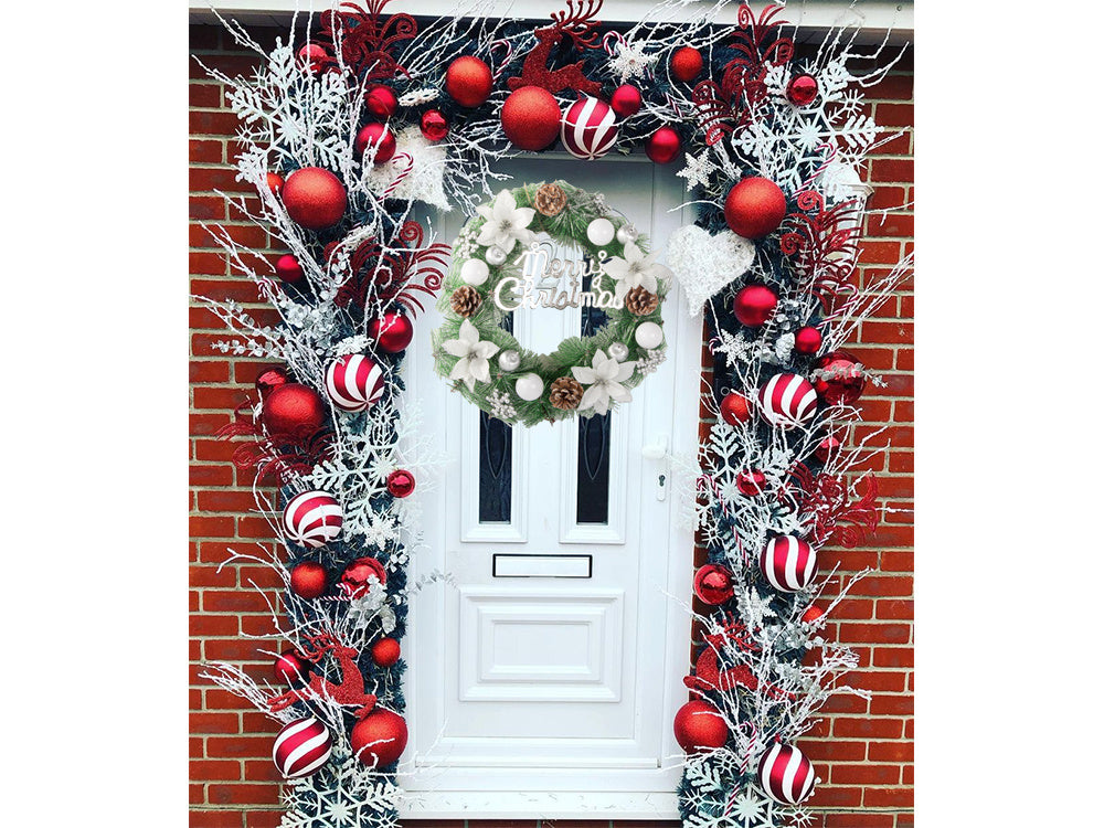 - Priekinės durys: Klasikinė vieta, kuri sukuria šventinę nuotaiką nuo pat slenksčio.