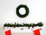 Pagamintas iš aukštos kokybės medžiagų, vainikas yra papuoštas kalėdiniais elementais, tokiais kaip: