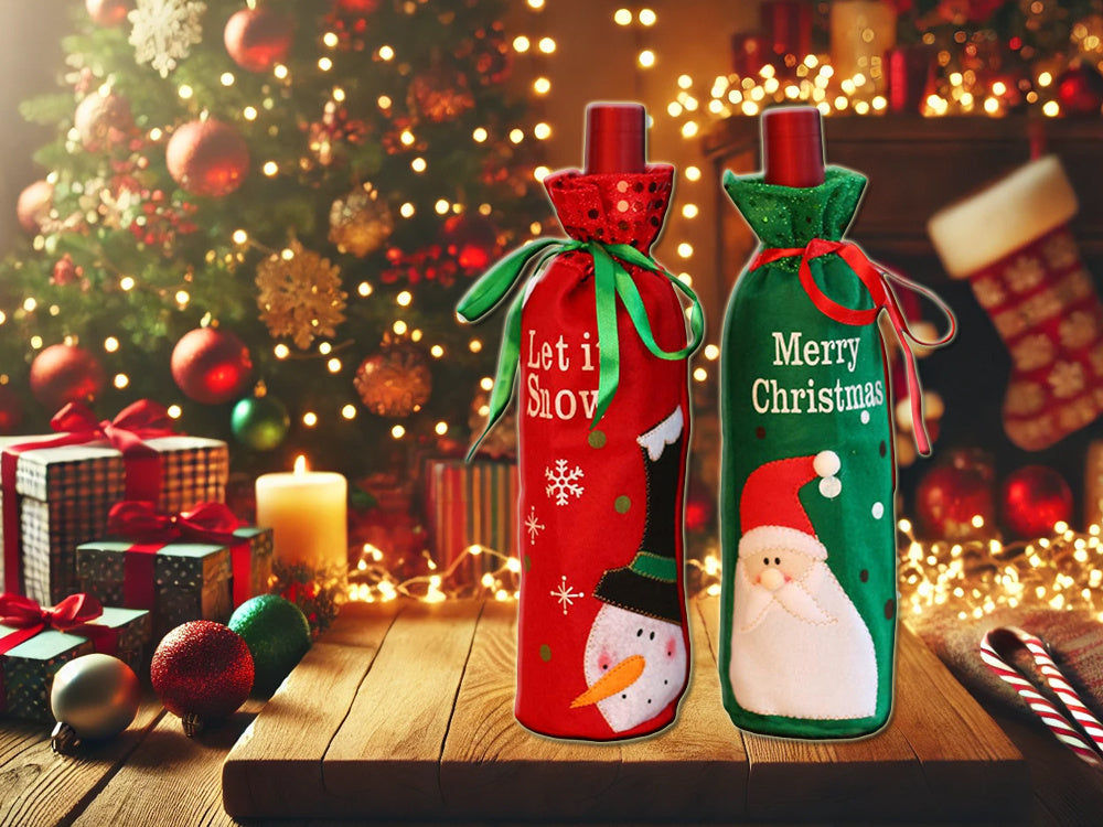 ŠVENTINIS BUTELIO DANGTELIS SNIEGO SENIS KALĖDŲ DEKORACIJA - suteikite šventinio žavesio ir elegancijos savo kalėdiniam stalui su šiuo unikaliu butelių dangteliu, puikiai tinkančiu vynui ar kitiems spiritiniams gėrimams.