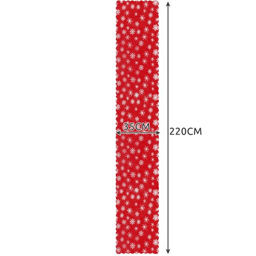 LABAI ILGAS KALĖDINIŲ STALŲ PRODUKTAS, RAUDONAS SU BALTOMIS SNIEGOMIS, 220 x 35 cm