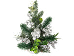 Su elegantiškais sidabriniais kamuoliukais ir dekoracijomis, šis ornamentas išsiskiria iš tradicinių kalėdinių dekoracijų. Visas kūrinys yra suvyniotas į sidabro spalvos audinį, kuris puikiai dera su kitais dekoratyviniais elementais, sukuriant vientisą ir stilingą visumą.