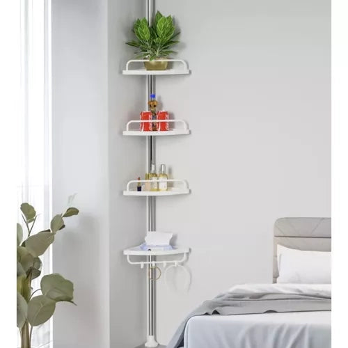 - SPECIFIKACIJA – medžiaga: PP, kiti: nerūdijantis plienas + PET + silikonas; aukštis 230-300 cm; vamzdžio skersmuo 2,4 cm; lentynos matmenys: 21,5 x 33 x 7 cm, svoris: 1,16 kg; svoris pakuotėje: 1,35 kg.