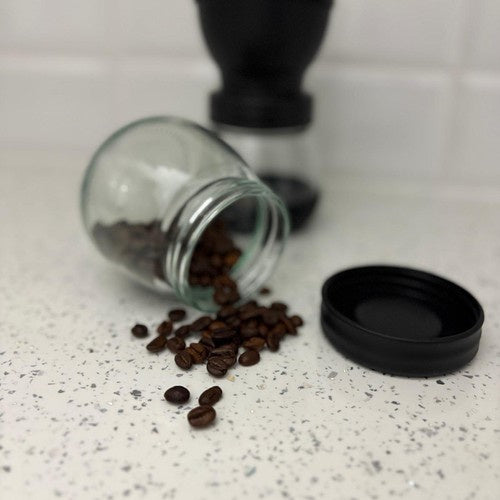 ?? aromatą išsaugančios stiklinės taros - vienas prisukamas prie malūnėlio, o kitas maltai kavai, ačiū sandarus uždarymas, stiklinis indas išsaugo gaivumą ir pilną kavos aromatą, paruoštą užplikyti