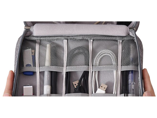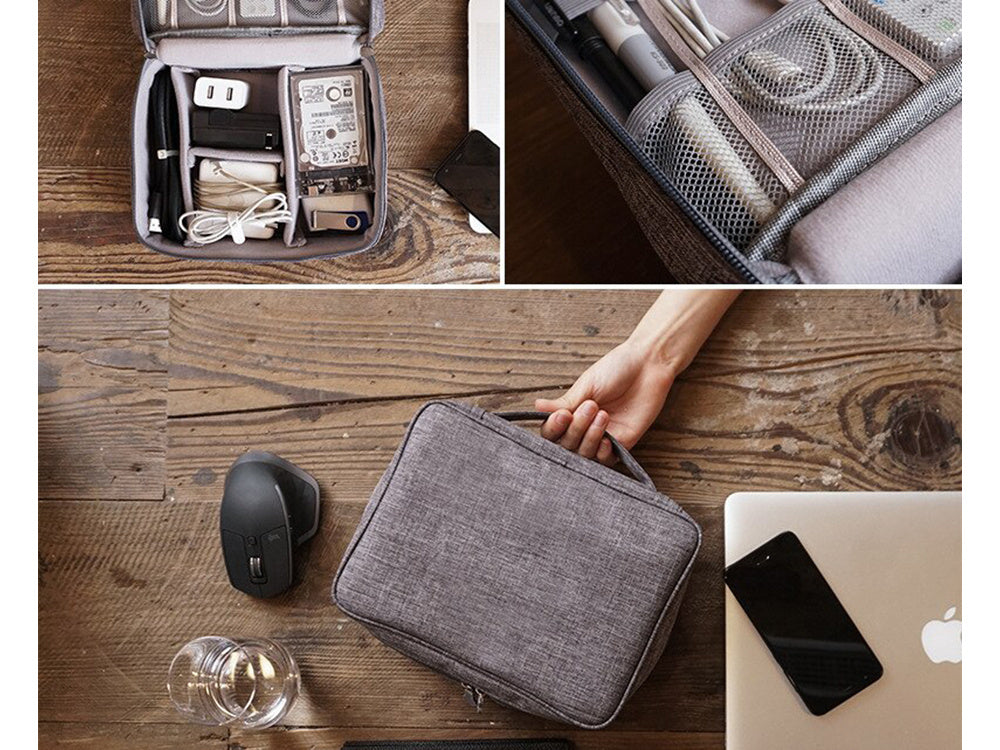 Organizatorius sukurtas atsižvelgiant į funkcionalumą keliaujant . Jame yra keli skyriai, elastingi kabelių dirželiai ir kišenės smulkesniems priedams, pavyzdžiui, atminties kortelėms, adapteriams ar ausinėms. Visa tai leidžia paprastai ir intuityviai tvarkyti elektroninius reikmenis. Dėl kompaktiško dydžio ir lengvos konstrukcijos jį lengva pasiimti su savimi bet kur. Nesvarbu, ar keliaujate lėktuvu, dviračiu, į biurą, ar į universitetą, šis kelioninis organizatorius bus nepakeičiamas priedas. Pagamintas iš aukštos kokybės medžiagų, šis organizatorius yra patvarus ir atsparus pažeidimams, todėl naudojamas ilgai. Tvirti Z formos užtrauktukai saugo visus daiktus ir apsaugo juos nuo atsitiktinio iškritimo. ✅ Produkto kodas: ✅ 01898 ✅ Aukštos kokybės konstrukcija ✅ Reguliuojamos velcro pertvaros ✅ Uždarymas: užtrauktukas ✅ Išmatavimai: Dydis: 25 cm x 18,5 cm x 10 cm ✅ Spalva: pilka ☑️ Gamyklinis naujas organizatoriusKELIONINIS KREPŠYS ĮKROVIKLIAMS IR KABELIAMS ORGANIZUOTI
