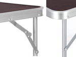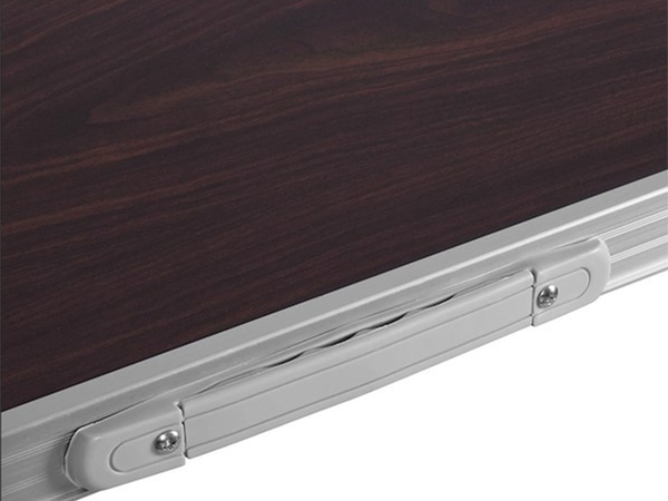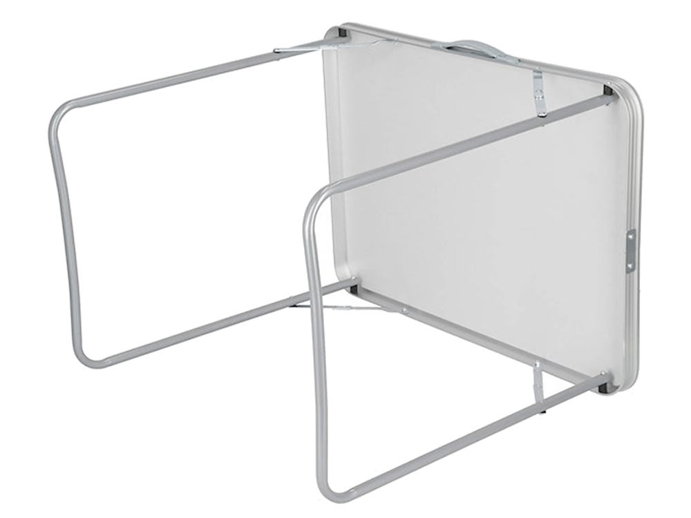 Stalo konstrukcija pagaminta iš lengvo ir tvirto aliuminio, užtikrinančio ilgaamžiškumą ir stabilumą. Stalviršis iš patvaraus plastiko yra lengvai valomas, todėl galite mėgautis švariu ir tvarkingu paviršiumi kiekvieną kartą, kai naudositės šiuo stalu.