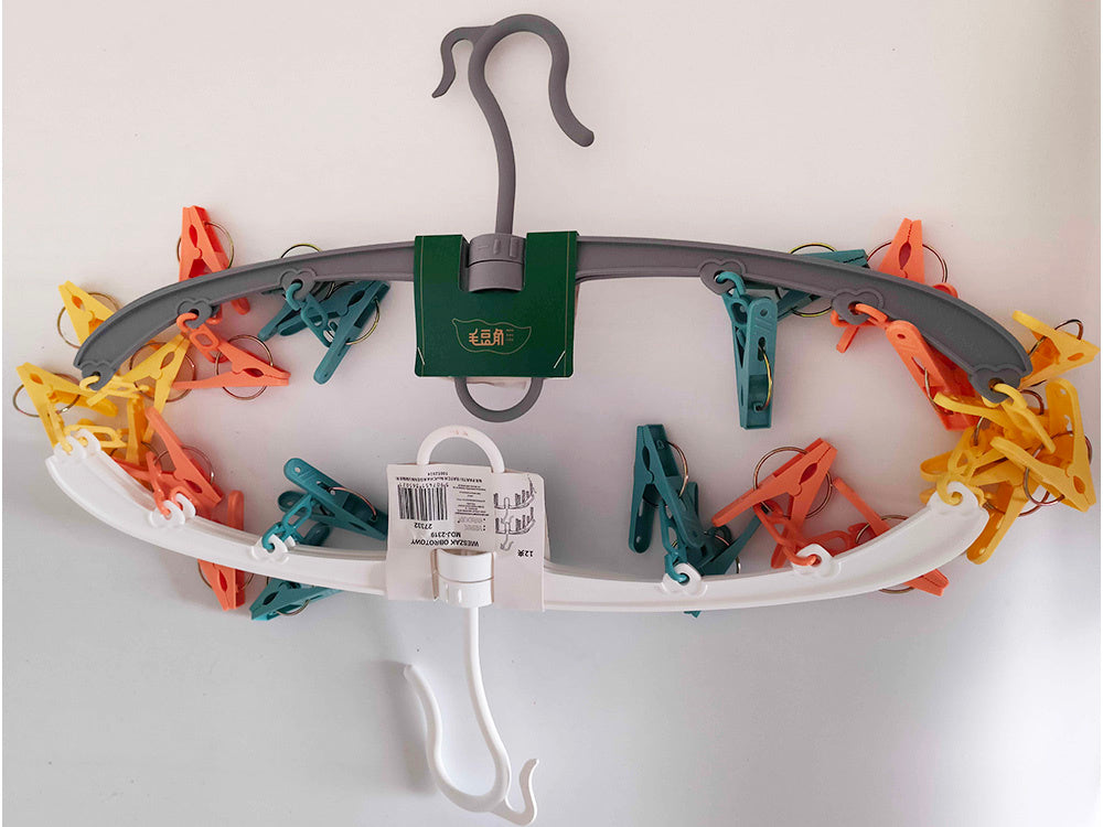 - 12 prisegamų skalbinių segtukų, skirti greitam ir efektyviam džiovinimui.