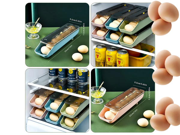 Pristatome Konteinerį kiaušinių dėžutę šaldytuvo organizatorių kiaušinių dėklą - nepakeičiamą jūsų virtuvės partnerį, užtikrinantį, kad kiaušiniai bus laikomi saugiai ir patogiai. Šis ergonomiškas ir praktiškas konteineris talpina maždaug 7 kiaušinius, o jų dizainas leidžia lengvai pasiekti kiekvieną kiaušinį, nes jie automatiškai nuslenka žemyn, kai vieną paimate.