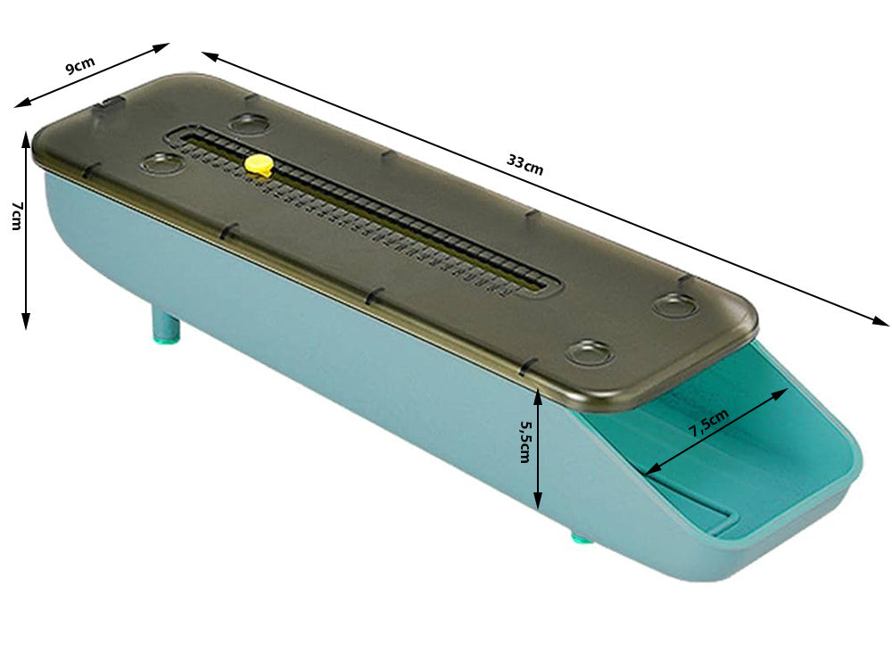 - Matuojant: Aukštis: 7 cm, Plotis: 9 cm, Ilgis: 33 cm